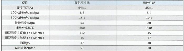 普通橡胶与聚氨酯性能对比表: